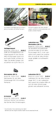 Ausziehbare Verlängerung für die Reini- Schmale Saugdüse des Akku-Fenster-