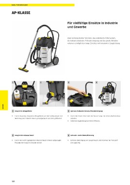 í Durch den leicht zugänglichen Ablassschlauch können aufgesaugte í Einfache Befestigung von Saugschlauch und Krümmer bei Transport