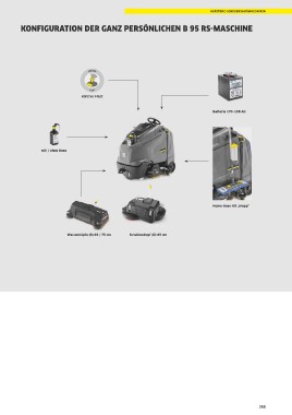 AUFSTEHZ-SCHEUERSAUGMASCHINEN KONFIGURATION DER GANZ PERSÖNLICHEN B 95 RS-MASCHINE Kärcher Fleet Batterie 170–198 Ah mit / ohne Dose Home-Base-Kit „Mopp“ Walzenköpfe (R) 65 / 75 cm Scheibenkopf (D) 65 cm 255