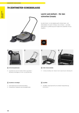 í Hauptkehrwalze wird mit beiden Rädern angetrieben – í Einfaches Handling und Entleeren durch ergonomischen Behältergriff.